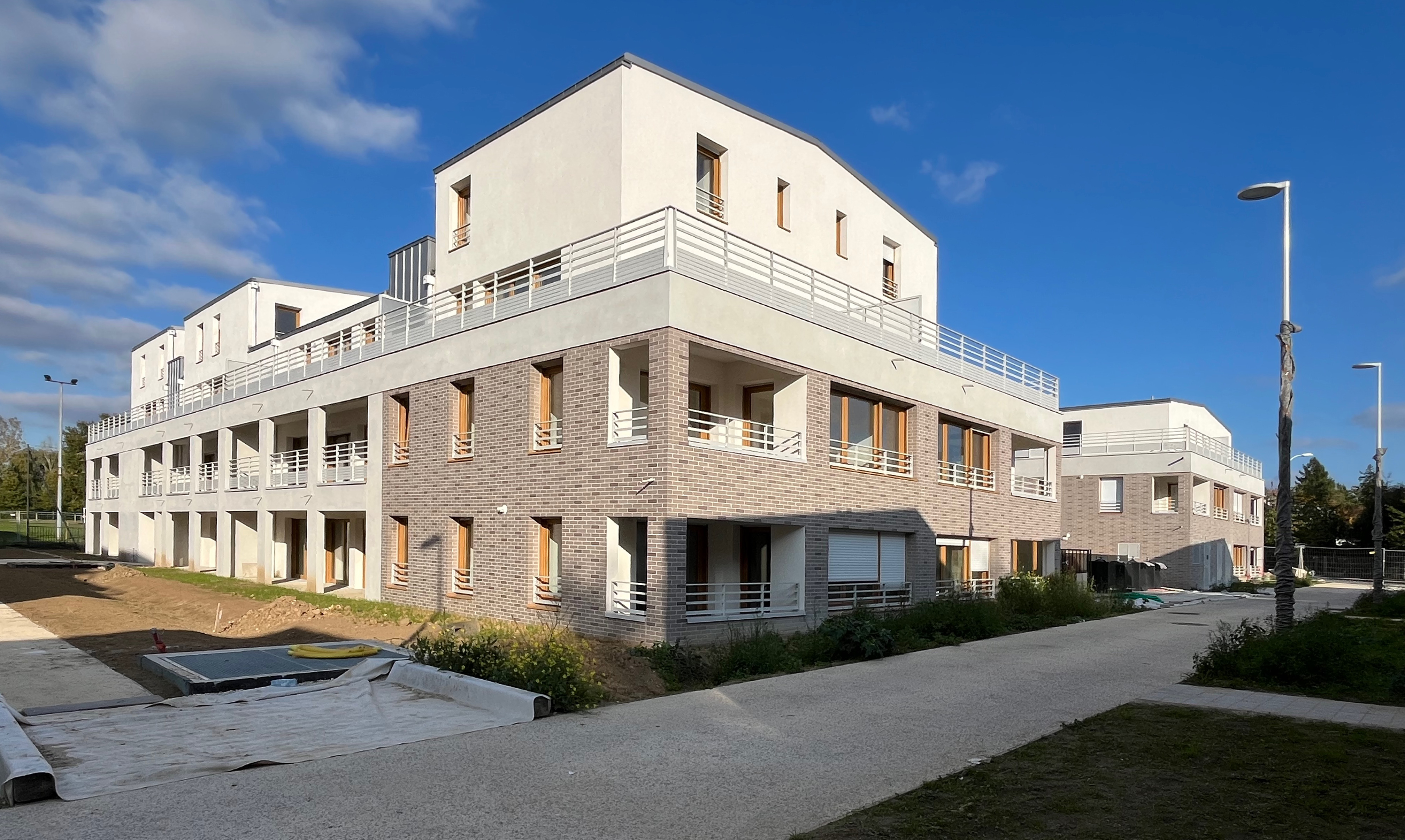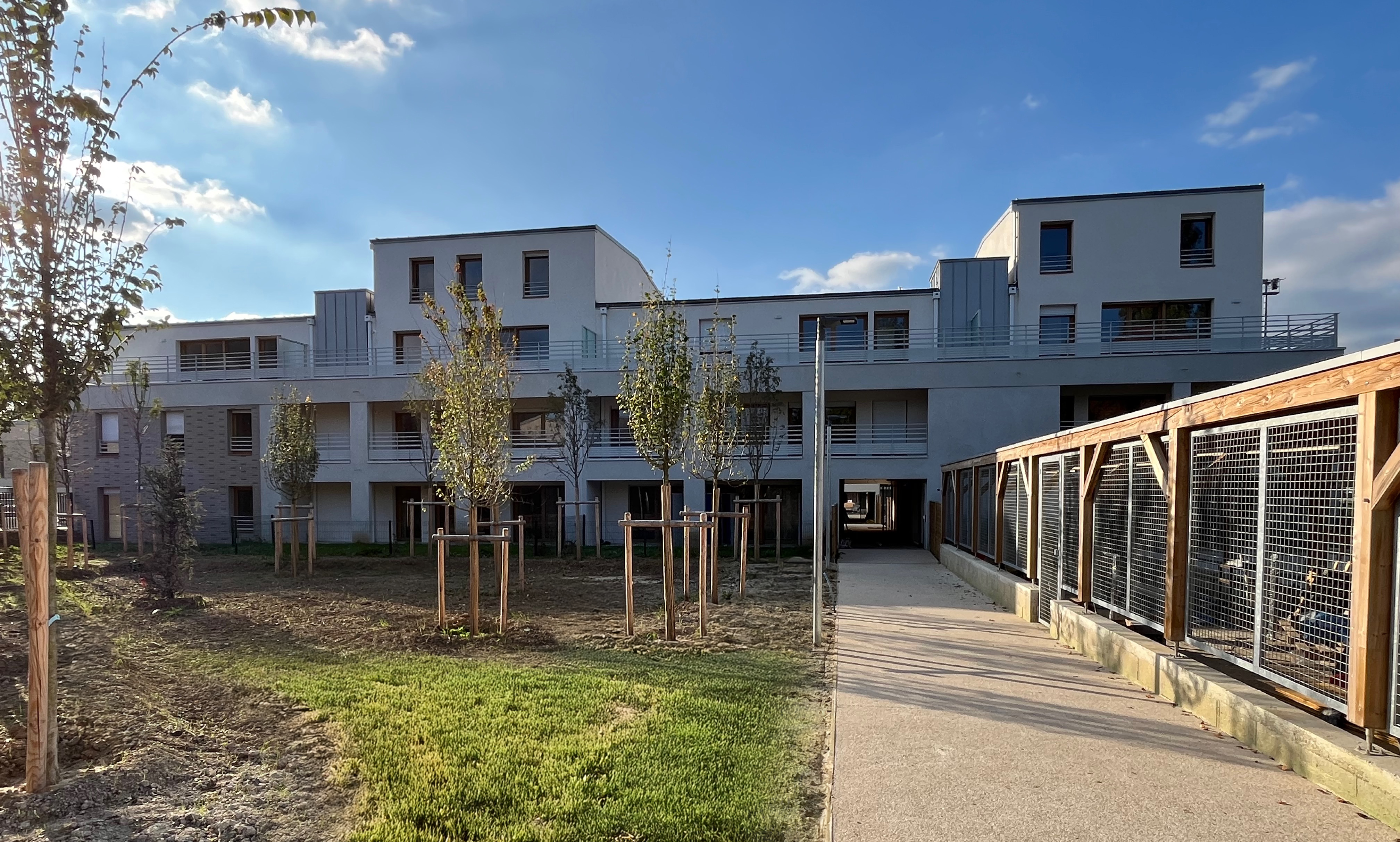 48 logements sociaux avec typologies du T1 au T5, reparties en 2 bâtiments R+2 (et attiques en R+3 pour les logements en Duplex). Parking souterrain et parking vélo couvert en entrée de parcelle.