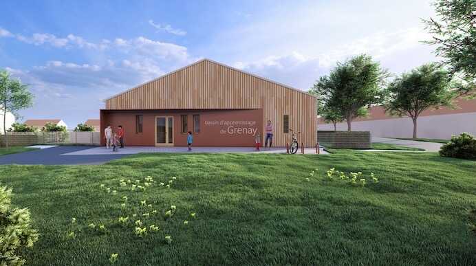 La ville de Grenay est doté de 4 écoles et d’un collège. Afin de permettre aux enfants de pratiquer l’apprentissage de la natation, elle a décidé de construire sa propre piscine à un coût très réduit : 2 vestiaires collectifs, surfaces optimisés pour les sanitaires, plages et locaux techniques. Bureau accueil, 1 local rangement. Chaufferie et CTA au RDC.