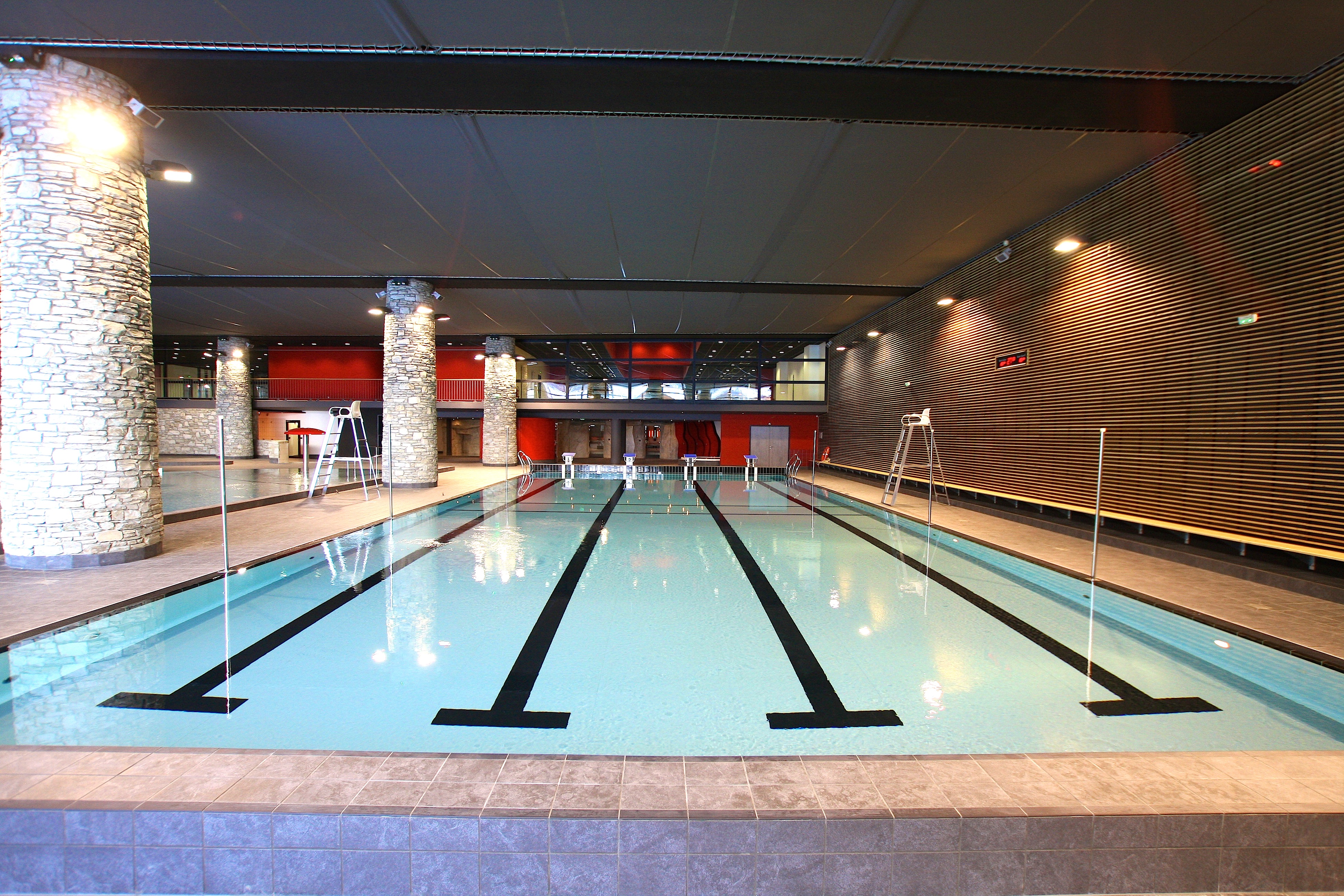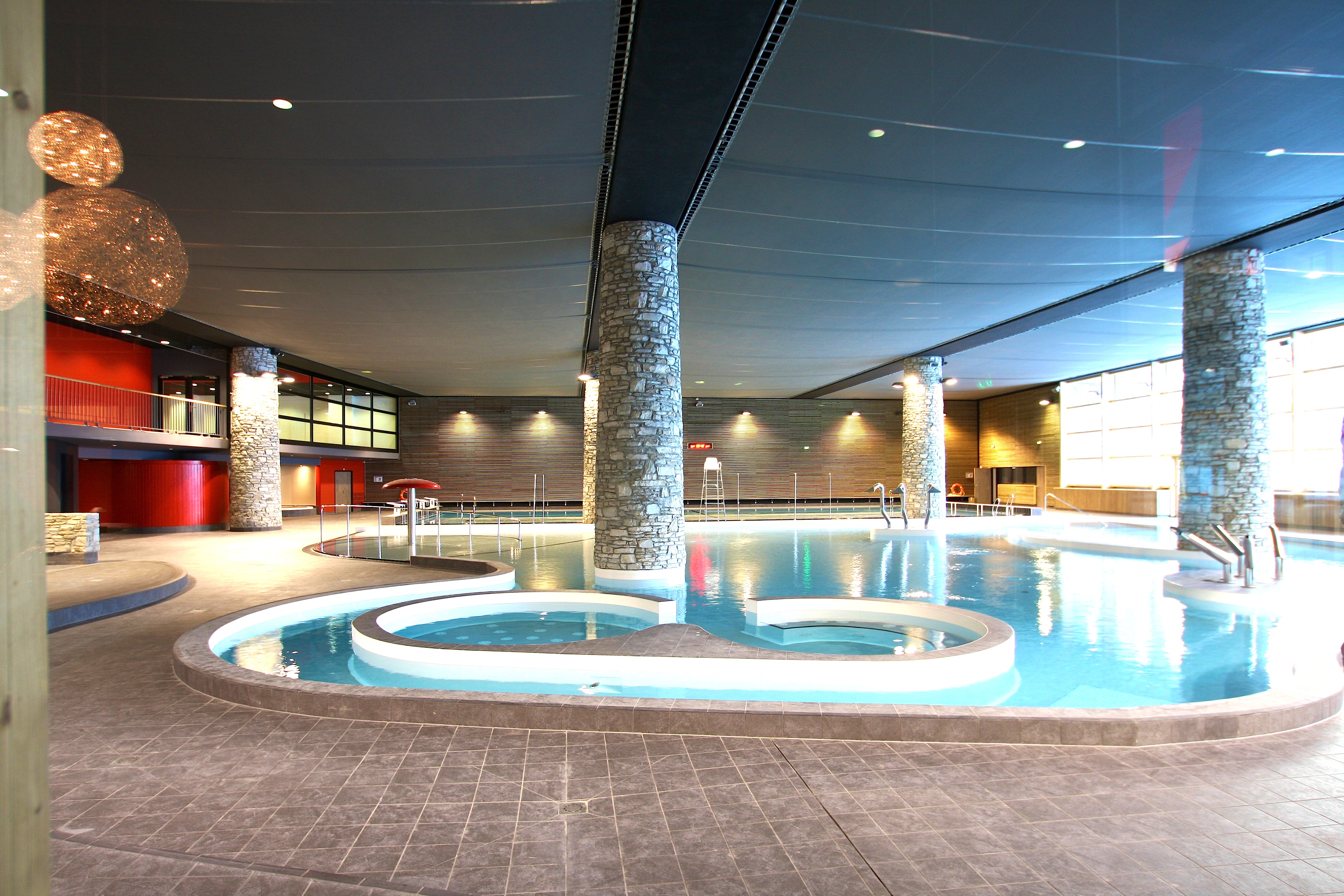 Située juste derrière la façade, la halle aquatique propose deux bassins représentant plus de 700 m2 de plan d’eau. Toutes les fonctions de bien être y sont regroupées : nage à contre courant, banquettes à bulles, jets massant, canons à eau ainsi qu’une aire de jeu pour les enfants.