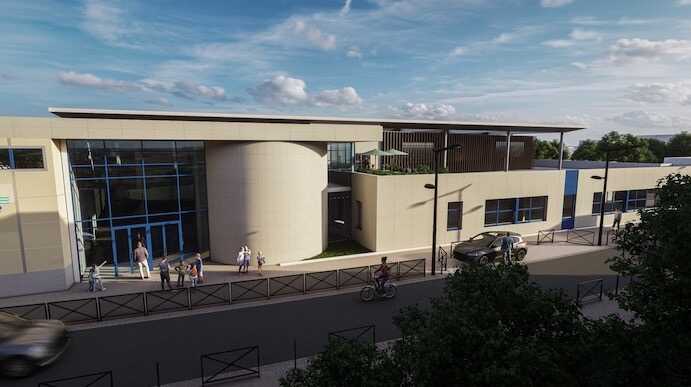 Pour les façades en pierres agrafées et en enduit, un ravalement des façades est programmé pendant les travaux, avec nettoyage. L’objectif est de redonner au bâtiment son éclat et d’intégrer la double extension en toiture terrasse et à l’angle Sud-Ouest du bâtiment.