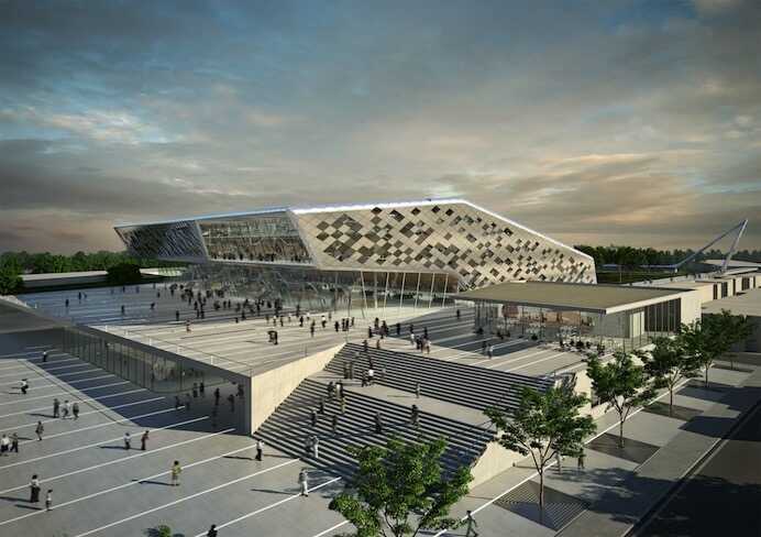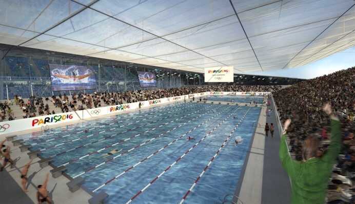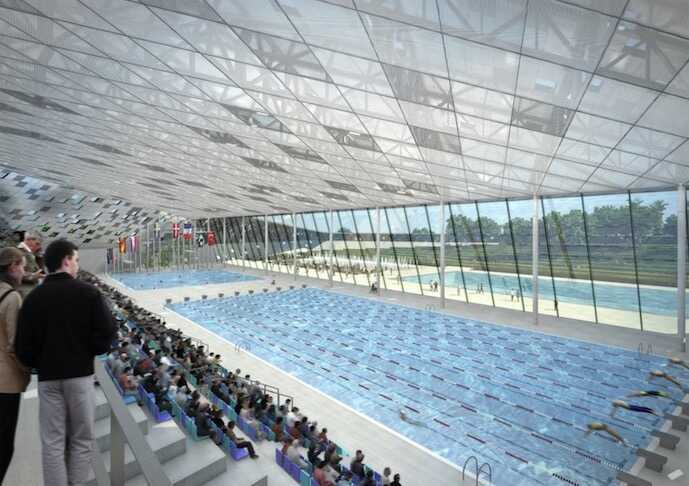 Construction du Centre Aquatique Olympique de Paris : 1 bassin de plongeons, 1 bassin de 50 m, 2 bassins d’échauffement et d’activités, des gradins pour chaque bassin, espace réceptions et médias, salles de cardio-training, hammam, sauna, spa, espaces relaxation, institut de formation, salle de restaurant. Espaces extérieurs : 1 bassin de 50 m, des jeux d’eau, solariums, plages, gradins amovibles.