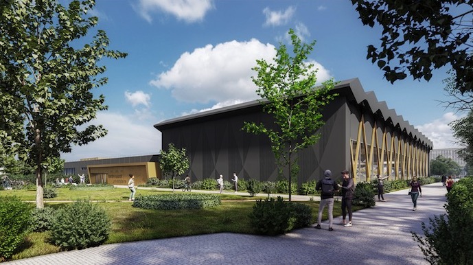 vestiaires collectifs secs et humides - locaux administratifs - patio intérieur minéral et végétal. Accueil de 4 000 personnes/jour.