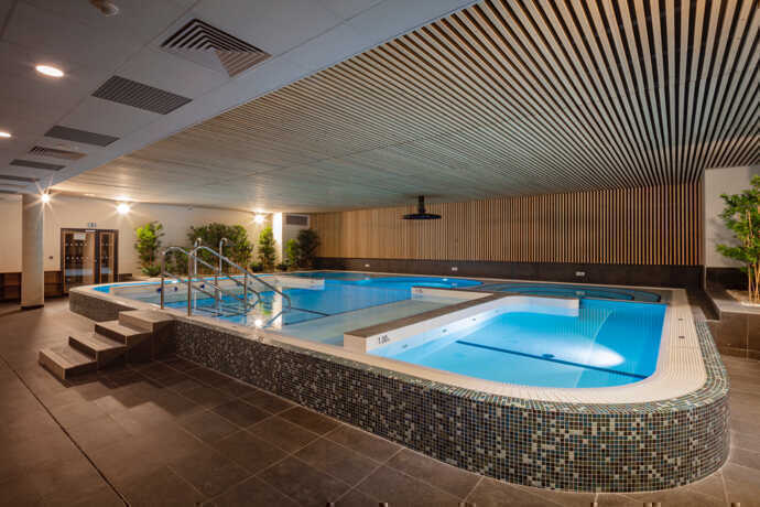 de la lumière naturelle par bre optique. Performance hydraulique 90 litres/baigneur. Consommations annuelles totales 2 500 kWhEF/m2 bassin/an. Consommation