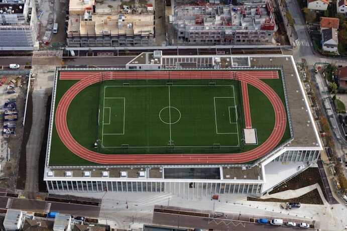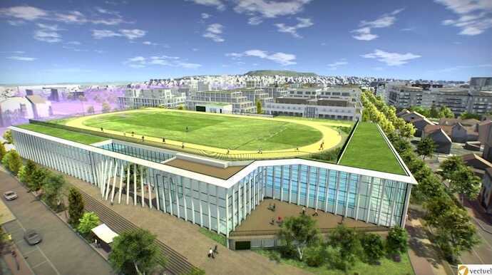 Programme : Création d'un complexe multisports (piscine, gymnase, salles de sport, piste d'athlétisme en toiture)