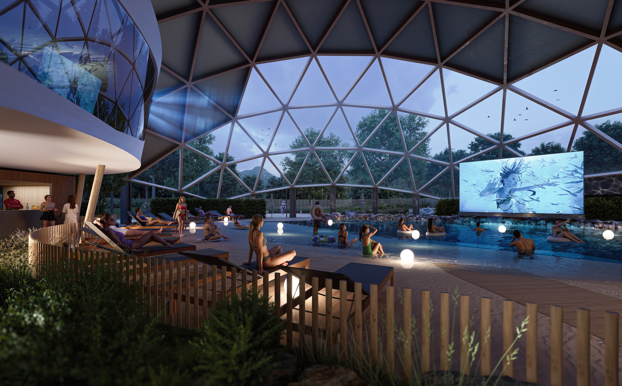 Autour du bassin, les espaces de soin et de bien-être prolongent cette cohérence : récupération, massages, pédagogie du cycle de l’eau.