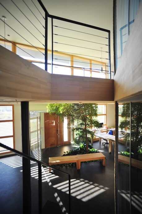 - un lien particulier avec la nature environnante : bassin, potager, espaces verts… et un arbre dans le bâtiment !