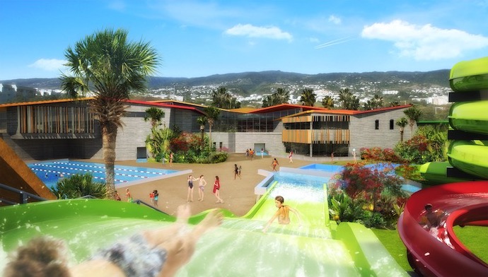 - 5 bassins : 1 bassin à vagues, 1 bassin d’apprentissage et loisirs, 1 bassin de perfectionnement, 1 pataugeoire très ludique et 1 bassin de glisse.