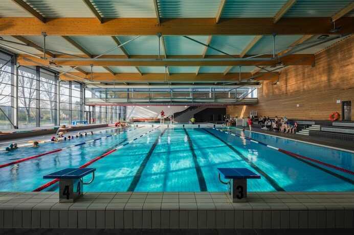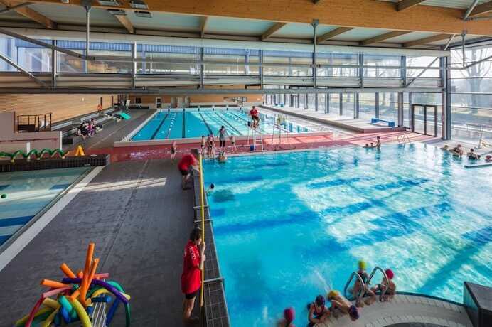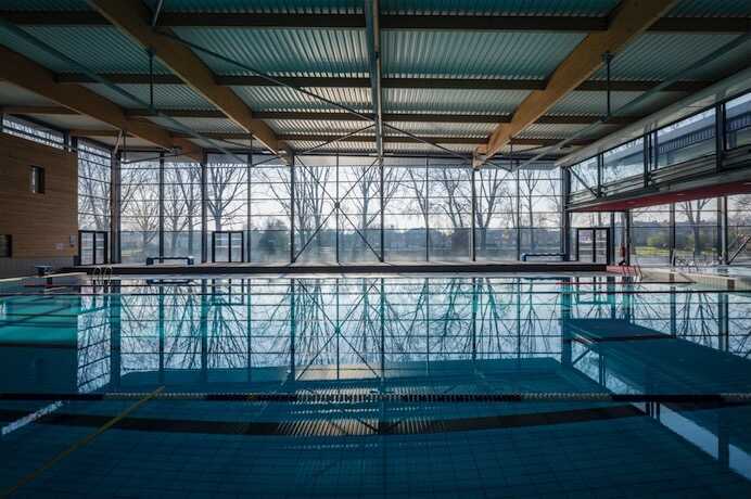 Présentation du projet : La piscine est composée d’un bassin sportif, d’un bassin ludique, de gradins, d’une pataugeoire, d’un pentagliss et d’un espace bien-être avec sauna et hammam.