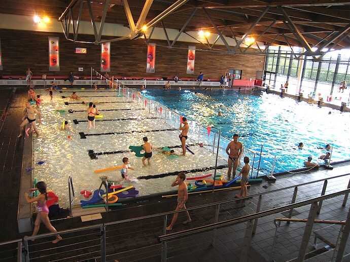 La piscine est composée d’un bassin d’apprentissage, d’un bassin sportif de 25x20 mètres avec fond mobile, de gradins.