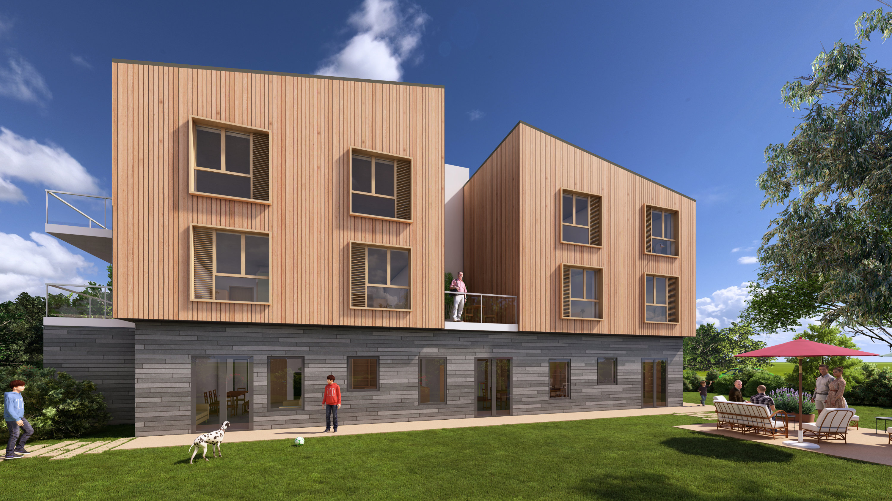 description : 18 chambres seniors enmodulaire hors site dans une grandemaison en co-living avec de nombreux espaces de vie partagés, intérieurs et extérieurs.